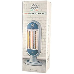 Stufa oscillante con 2 elementi in fibra di carbonio e griglia protettiva. Interruttore anti ribaltamento. Potenza 1000W.