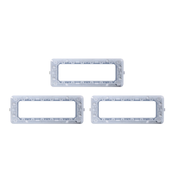 I supporti della serie compatibile Matix sono progettati per adattarsi a qualsiasi tipo di ambiente, sia domestico che professionale, offrendo un'elevata versatilità d'uso. I supporti sono progettati per una facile installazione, consentendo di montarli rapidamente e senza complicazioni anche per un utente fai da te. Con un design classico e sobrio, ogni supporto si integra armoniosamente in qualsiasi contesto, aggiungendo un tocco di eleganza senza comprometterne la funzionalità. Realizzati con materiali di alta qualità e secondo rigorosi standard di produzione, ogni supporto garantisce un'elevata affidabilità e una lunga durata nel tempo, assicurando prestazioni ottimali anche dopo anni di utilizzo. I supporti sono compatibili esclusivamente su elementi della serie Matix. Il set prevede 3 supporti 6Posti.