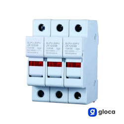 Il supporto per fusibili cilindrici Gloca RT18-32 3P è una base compatta e affidabile progettata per alloggiare fusibili da 10x38mm, ideale per proteggere circuiti elettrici sia in corrente alternata (AC) che continua (DC). Grazie al suo design a 3 poli e al pratico montaggio su guida DIN, questo supporto garantisce un’installazione semplice e sicura all’interno di quadri elettrici civili e industriali. Costruito con materiali resistenti al calore e all’arco elettrico, assicura prestazioni durevoli e un’elevata sicurezza operativa. Adatto per applicazioni in impianti fotovoltaici, automazione industriale e distribuzione elettrica, rappresenta una soluzione efficiente per proteggere le apparecchiature da sovracorrenti e cortocircuiti.