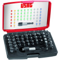 Cassetta portainserti compatta in materiale plastico. Interno in mousse preformata. Include prolunga portainserti e cricchetto reversibile magnetici. Contenuto: 4 inserti ad intaglio 4-5,5-6,5-8; 3 inserti a croce PH 1-2-3; 3 inserti a croce PZ 1-2-3; 4 inserti esagonali maschio 3-4-5-6 mm; 9 inserti TORX T8-T10-T15-T20(x2)-T25(x2)-T30-T40; 7 inserti TORX Tamper Resistant T10-T15-T20-T25-T27-T30-T40; 1 prolunga magnetica 1/4"; 1 cricchetto reversibile 1/4" magnetico.