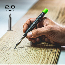 Il Pica Dry è il marcatore professionale per l'edilizia adatto a quasi tutte le superfici. Sia che si tratti di superfici asciutte o umide, lisce o ruvide, polverose o arrugginite, grazie all'ampia gamma di mine, si è attrezzati al meglio per ogni progetto. Diametro mina: 2,8 mm. Lunghezza della mina 125 mm.