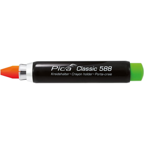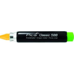 Porta gesso di alta qualità con meccanismo a pressione e forma triangolare ergonomica e arrotondata. L'involucro in plastica è realizzato in ABS resistente agli urti, il pulsante è nel classico colore verde Pica. Pinza in metallo. Adatto per gessi di 11-12 mm di spessore.