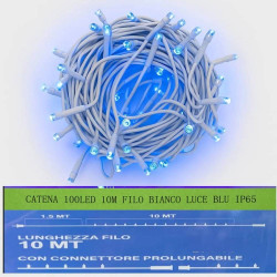 gloca Catena 100LED 10M Filo Bianco Varie Luci IP65 (Luce Blu)