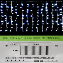 gloca Tenda 200LED 3m X 1m Filo Bianco Flash Bianco IP65 (Luce Bianca)