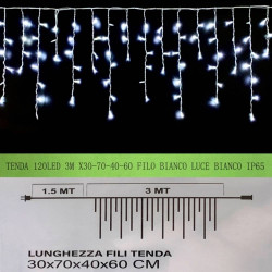 gloca Tenda 120LED 3m X 30-70-40-60cm Filo Bianco Flash Bianco IP65 (Luce Bianca)