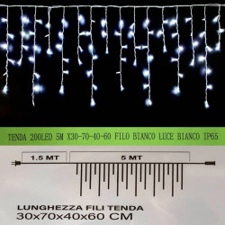 La tenda luminosa Gloca 120 LED con dimensioni 3m x 30-70-40-60 cm e filo bianco è la scelta ideale per creare decorazioni suggestive e di grande impatto visivo.