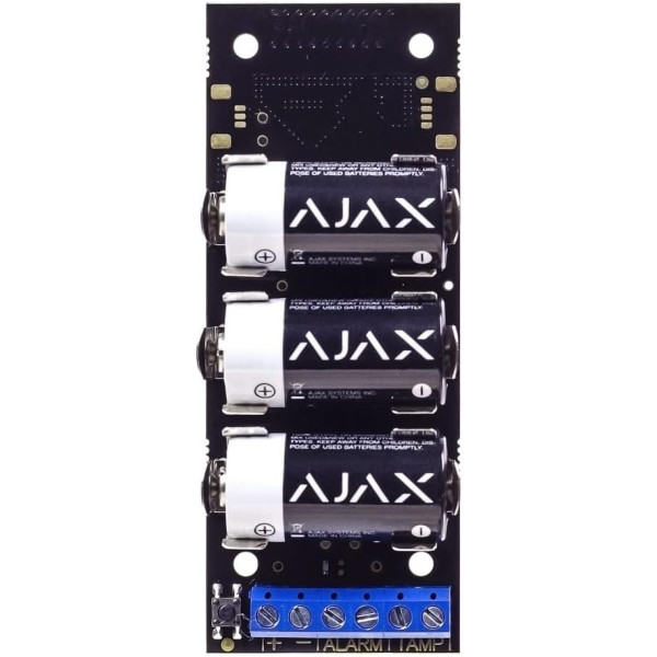 Modulo trasmettitore universale a lunga autonomia. Il trasmettitore consente di collegare rivelatori con una uscita cablata al sistema di sicurezza Ajax.