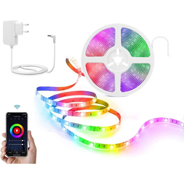 Kit Striscia LED 5M Wi-Fi RGB + Bianco caldo, dimmerabile 60LED/m, 1200lm, 24W max, 12V da esterno IP54 comandabile da Smartphone e Vocalmente. Compatibile con Amazon Alexa e Google Home. Descrizione: Posiziona la striscia LED grazie al biadesivo in dotazione e crea la miglior atmosfera per ogni stanza. Puoi inoltre scegliere tra 16 milioni di colori, luce bianca calda e la luminosità che preferisci, tutto con il tuo smartphone, comodamente seduto dal tuo divano. App di controllo Homcloud scaricabile gratuitamente da App Store o Google Play (compatibile anche con App Smart Life). Montaggio: Semplice ed intutivo: ALIMENTATORE DI CORRENTE + CONTROLLER WIFI + STRISCIA LED Funzioni: Accesso remoto: Sempre tutto sotto controllo, ovunque tu sia. Controllo vocale: "Alexa, spegni la luce del soggiorno!" (compatibile sia con l'Assistente vocale Google che con l'Assistente vocale Amazon Alexa). Programmi e Timer: Accendi o spegni le luci ad orari prestabiliti creando scenari e automazioni all'interno dell'App. Condivisione: Scegli con quali membri della famiglia condividere il dispositivo prescelto. Configurazione rapida: Per connettere la lampadina allo smartphone servono meno di 2 minuti. Specifiche: Striscia: Lung: 5m, Larg 1cm, Voltaggio e Corrente:DC 12V 2A, Potenza: 24W(8w/m), Lumen: 2000 (400lm/m) Tipo SMD 5050, 60LEDs/m (30rgb+30ww /m), PU GLUE Colori:RGB+bianco caldo,Protezione:IP54 esterno(striscia LED) Controller: Input/output 12V 2.5A Alimentatore: Input AC 220-240V, output 12V 2.5A 30W(max) Spina Europea 2 PIN, Dimmerabile: Si con APP, Freq: 50Hz Range temp funzionamento: -10°C -- 40°C Protocollo comunicazione: 2.4 Ghz IEEE 802.11 b/g/n.