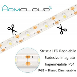 Kit Striscia LED 5M Wi-Fi RGB + Bianco caldo, dimmerabile 60LED/m, 1200lm, 24W max, 12V da esterno IP54 comandabile da Smartphone e Vocalmente.
