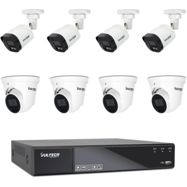 Kit videosorveglianza composto da DVR 8 Canali, 4 Telecamere Bullet e 4 Telecamere Dome 2.8mm 5Mpx. L’Universal Video Recorder VulTech Security VS-UVR7008AIEVO-RTN2 di nuova generazione è dotato di un chip con intelligenza artificiale per l’analisi delle scene e rilevare eventi SMD e PP.